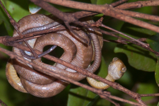 Карычневыя дравесныя змеі – жывёлы з пераважна начной актыўнасцю, радзіма якіх Аўстралія і Папуа-Новая Гвінея, аказаліся сапраўднай экалагічнай катастрофай для Гуама. У апошні час лічыцца, што яны нават зменшылі сваю колькасць на востраве, таму што ўсе магмыя нішы імі ўжо занятыя. Аднак гэтая навіна не можа ўзрадаваць дзевяць відаў птушак, якія да гэтага часу зніклі на Гуаме. Сярод іх пяць відаў і падвідаў былі мясцовымі эндэмікамі.