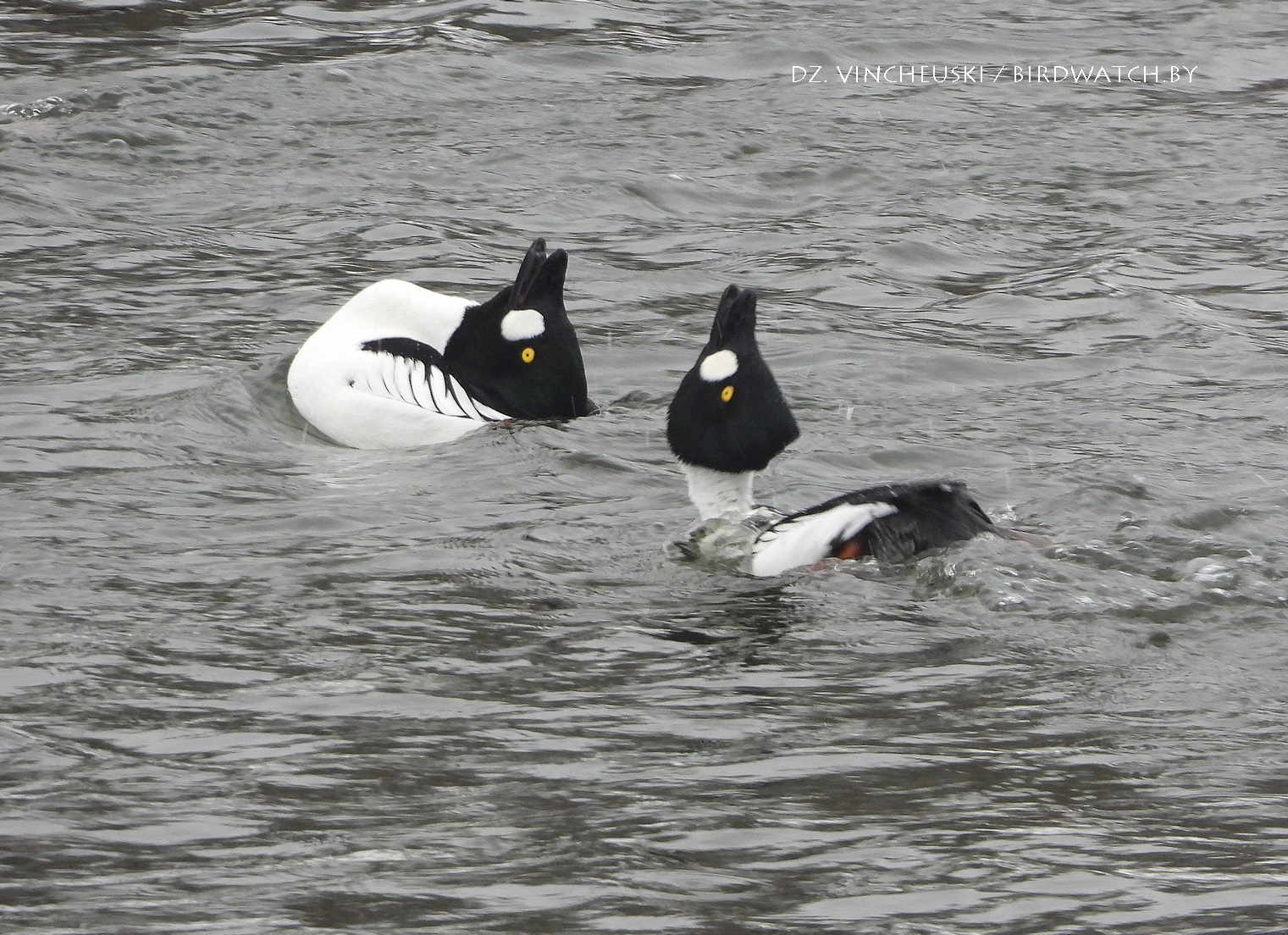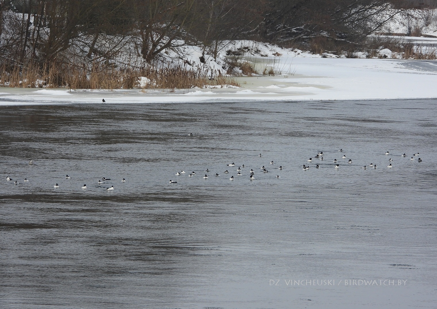 Але па мінулых зімовых назіраннях за гэтым відам я памятаў, што прыкладна з сярэдзіны снежня самцы гагалей і могуць, і актыўна такуюць. І ўсё чакаў магчымасць паздымаць гэта, а яна ўсё не наступала.