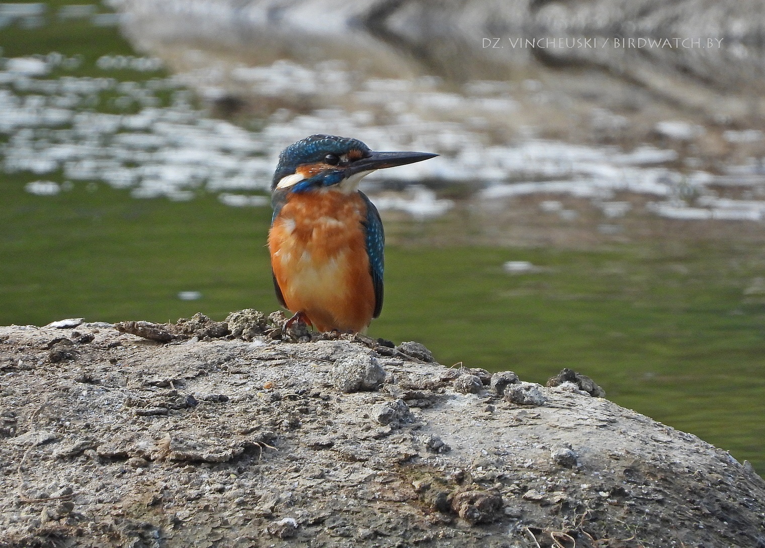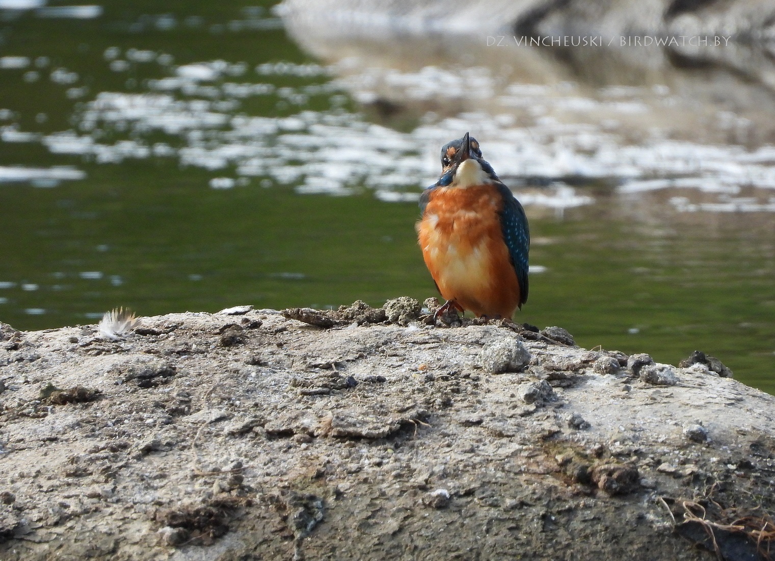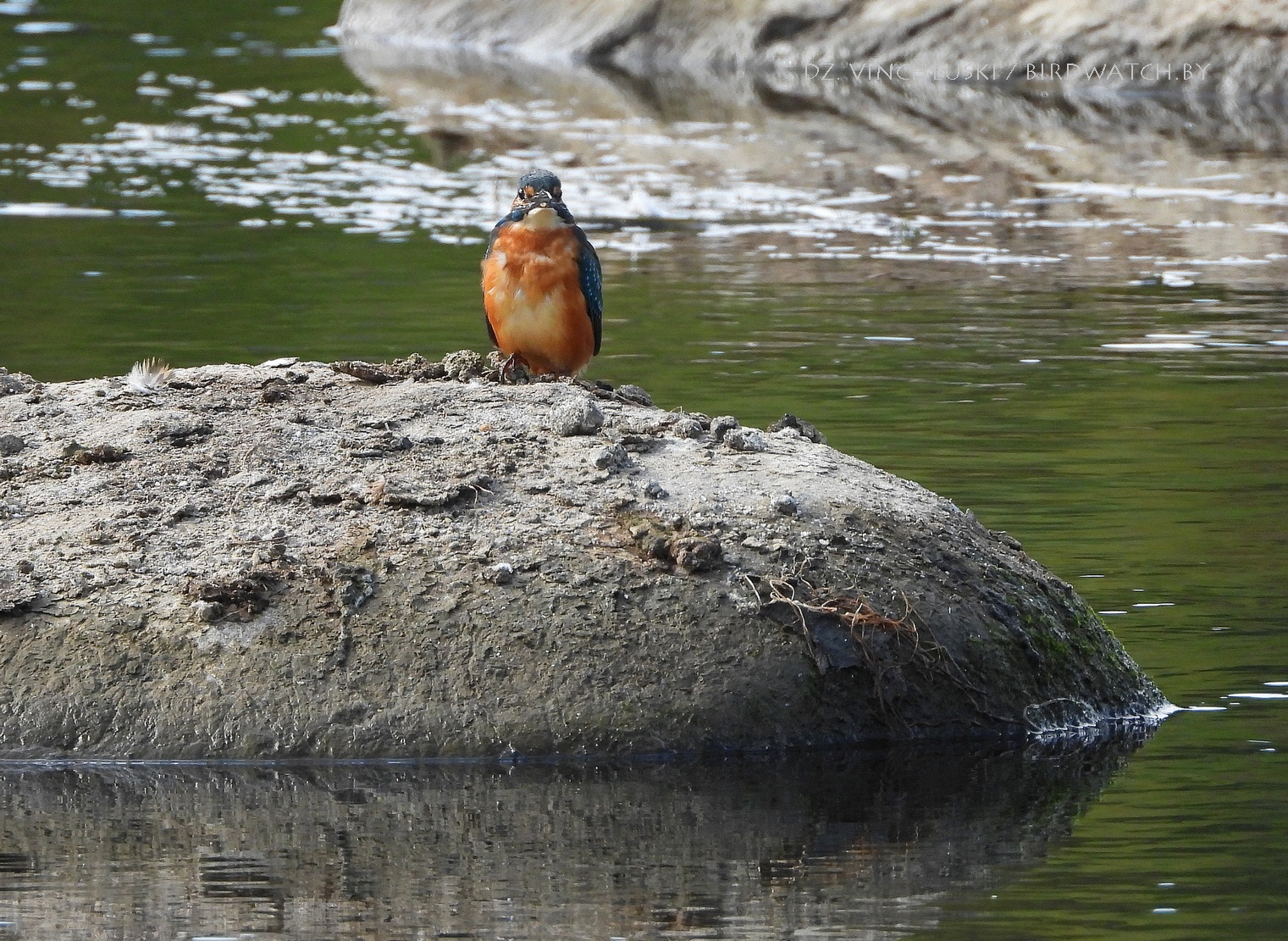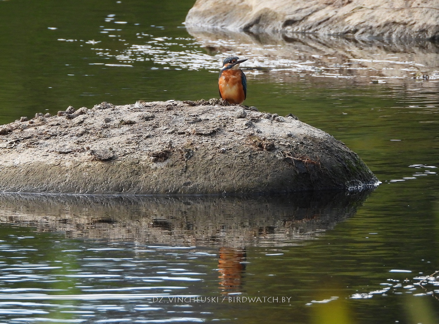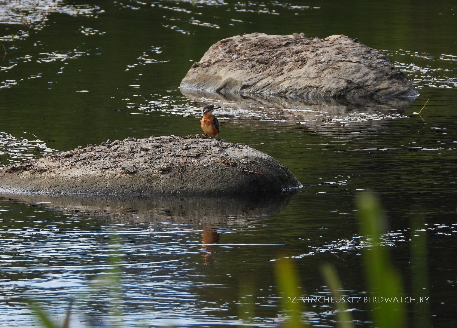І хаця гэтыя пералёты адбываліся ўсё бліжэй і бліжэй да мяне і я нават бачыў карычневага гнома з задзёртым дагары хвосцікам, сфатаграфаваць яго ўсё не атрымлівалася. Але нешта ўнутры ўнушала мне - пачакай яшчэ, не адыходзь. І я застаўся. Прайшло хвілін 5 і на адзін са шматлікіх валуноў у вадзе перад востравам села нейкая невялікая птушка. Да яе было метраў 15 і я не адразу зразумеў, што гэта... зімародак (Alcedo atthis)!