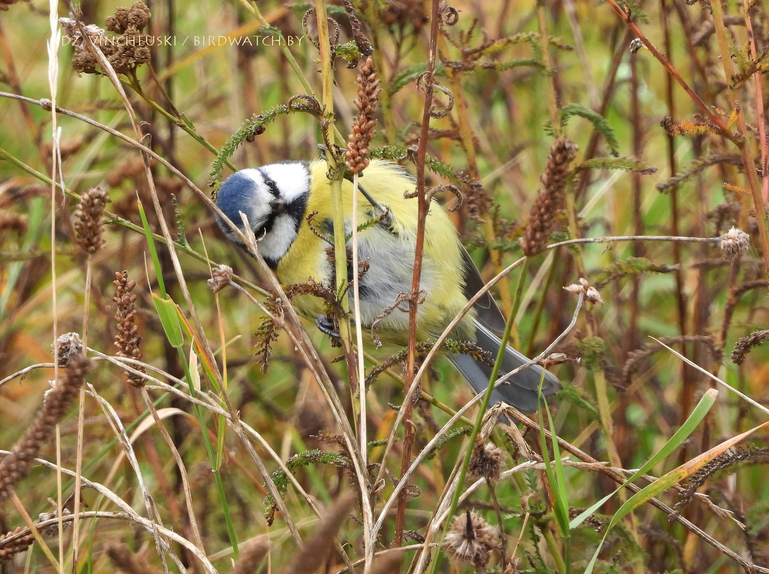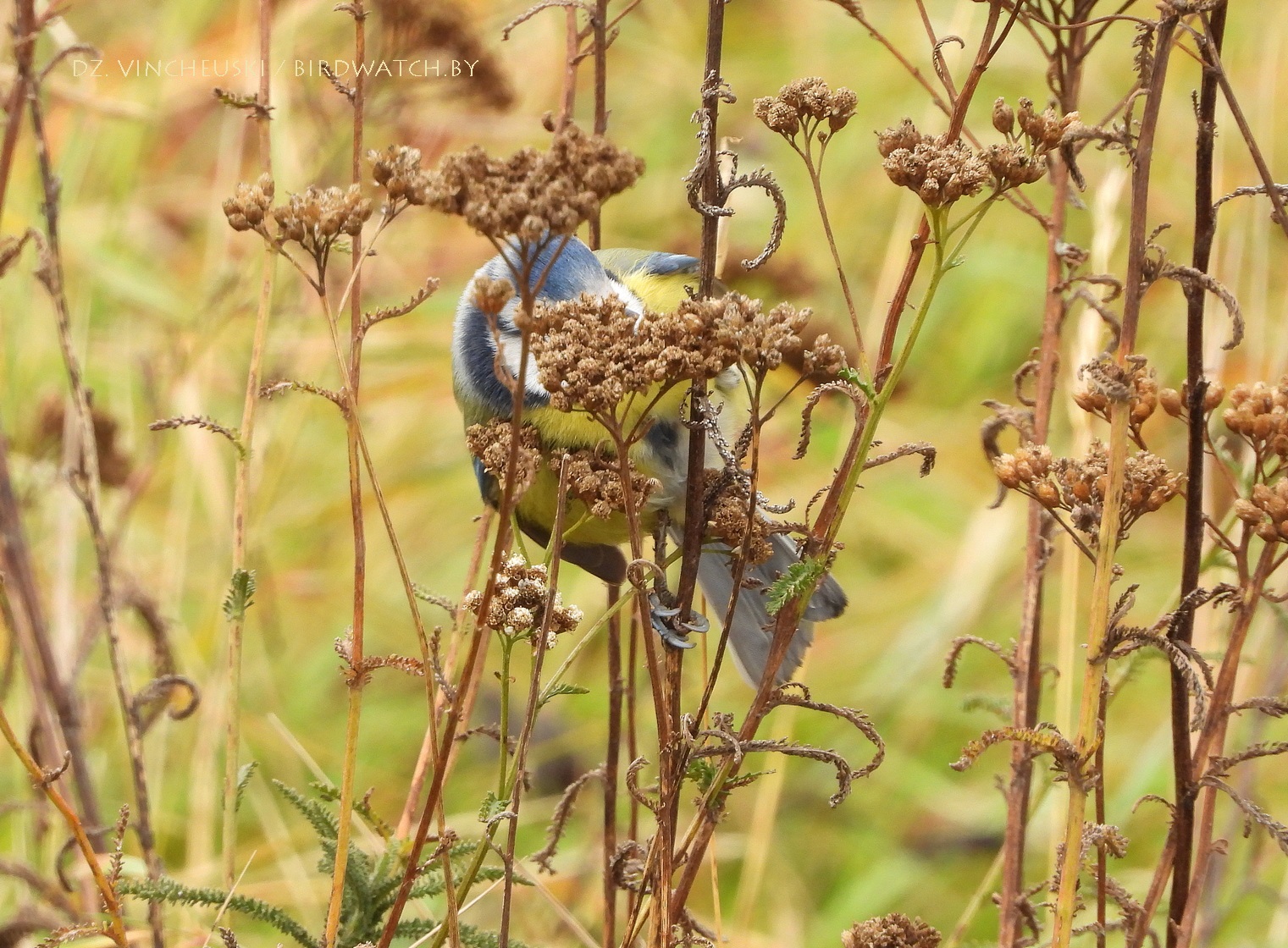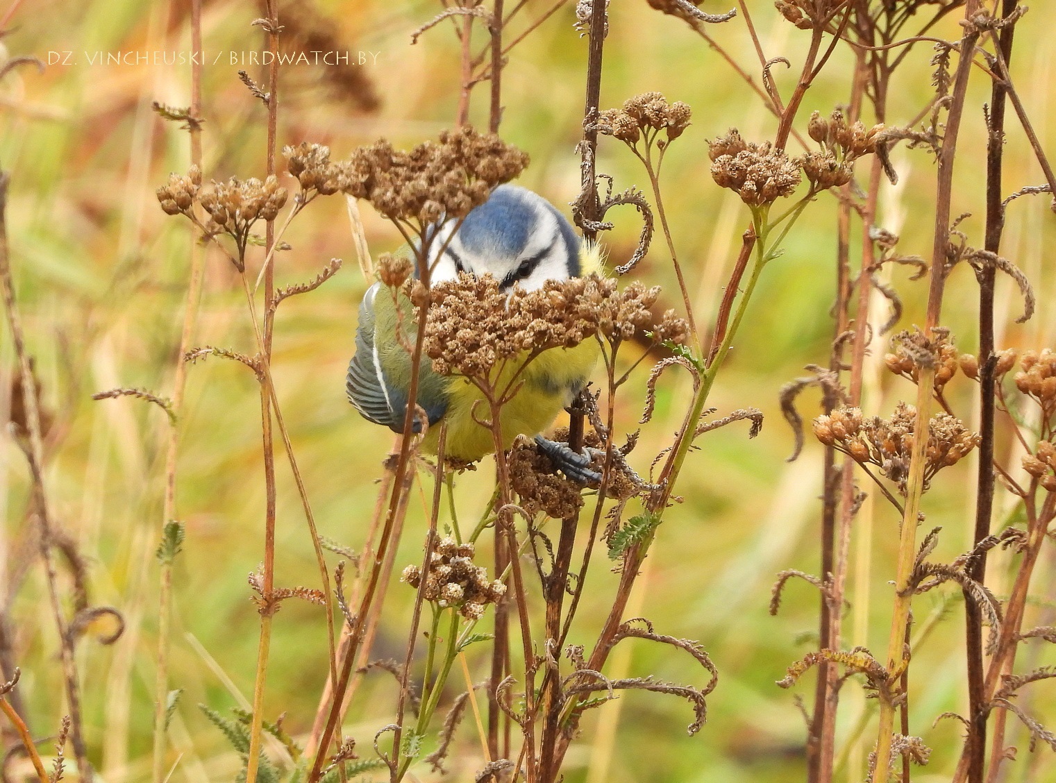 Здаецца, піжма (Tanacetum spp.) першую палову восені адной з апошніх радуе вочы ярка-жоўтымі кветкамі, а потым неяк незаўважна яны знікаюць і ператвараюцца ... ў пляцоўкі з насеннем. Якое, як аказалася, любяць сінія сініцы ((Parus) Cyanistes caeruleus).