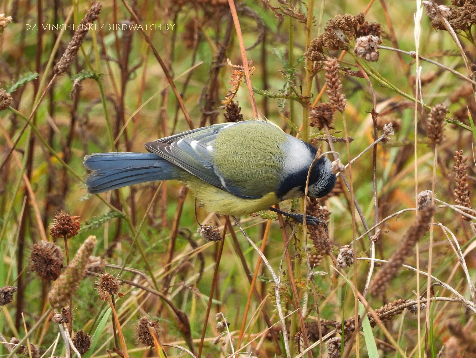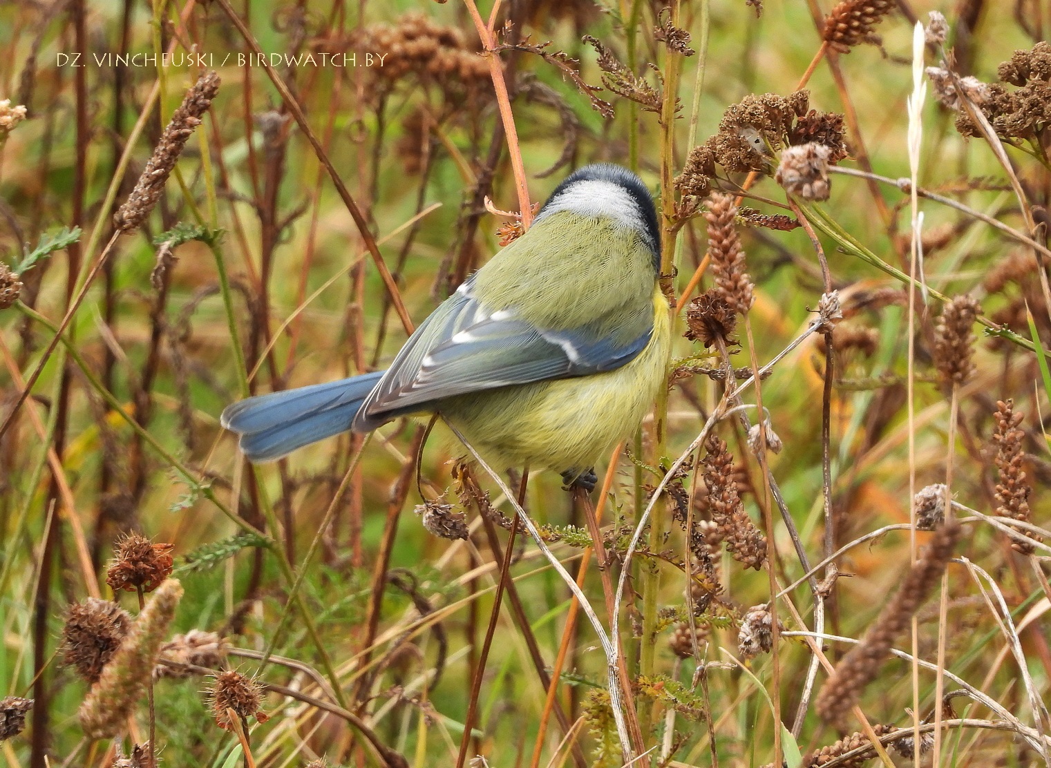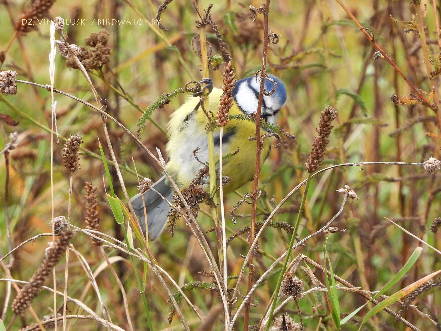 Здаецца, піжма (Tanacetum spp.) першую палову восені адной з апошніх радуе вочы ярка-жоўтымі кветкамі, а потым неяк незаўважна яны знікаюць і ператвараюцца ... ў пляцоўкі з насеннем. Якое, як аказалася, любяць сінія сініцы ((Parus) Cyanistes caeruleus).