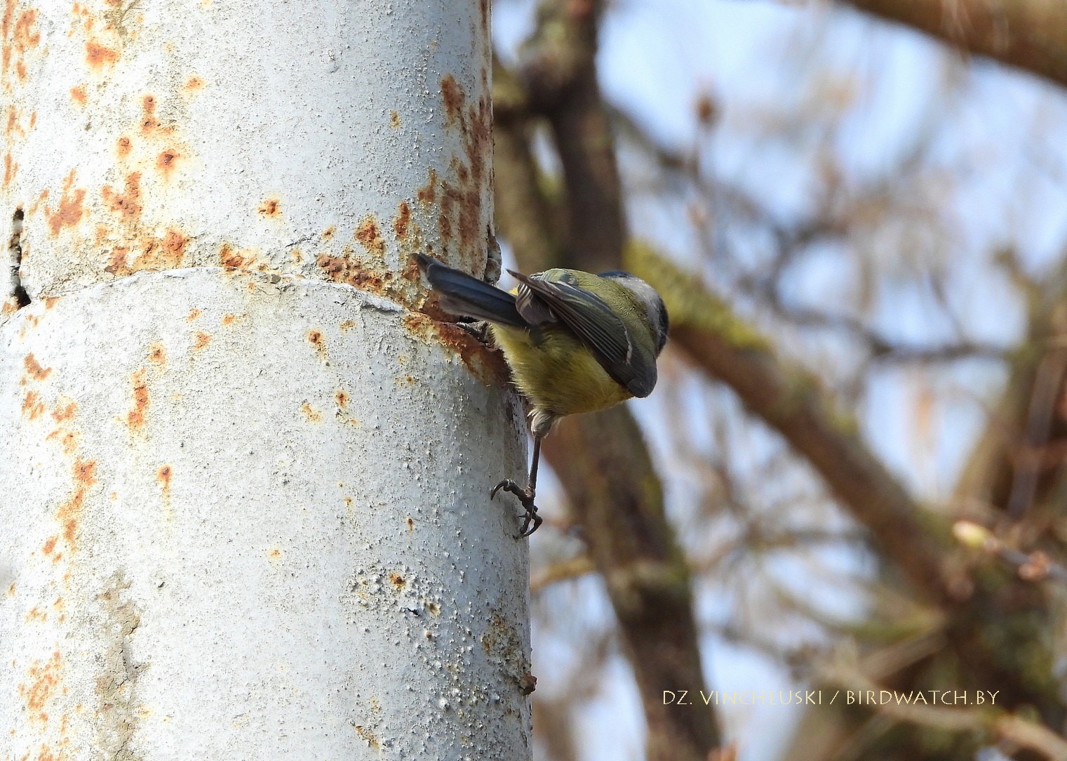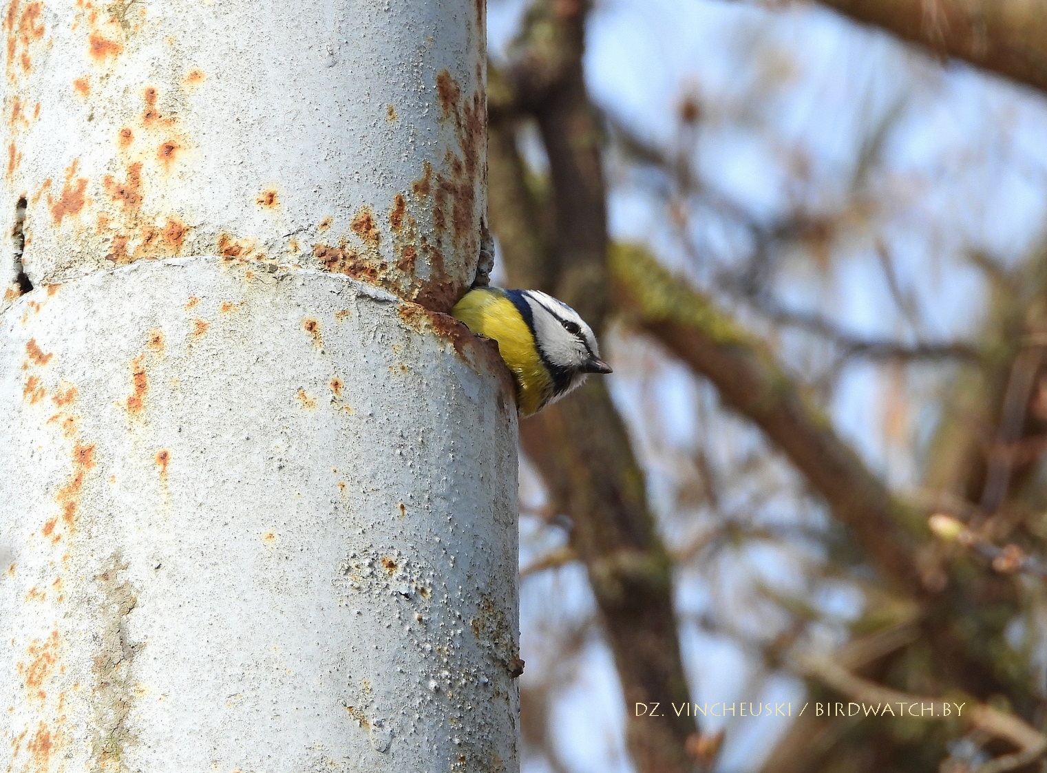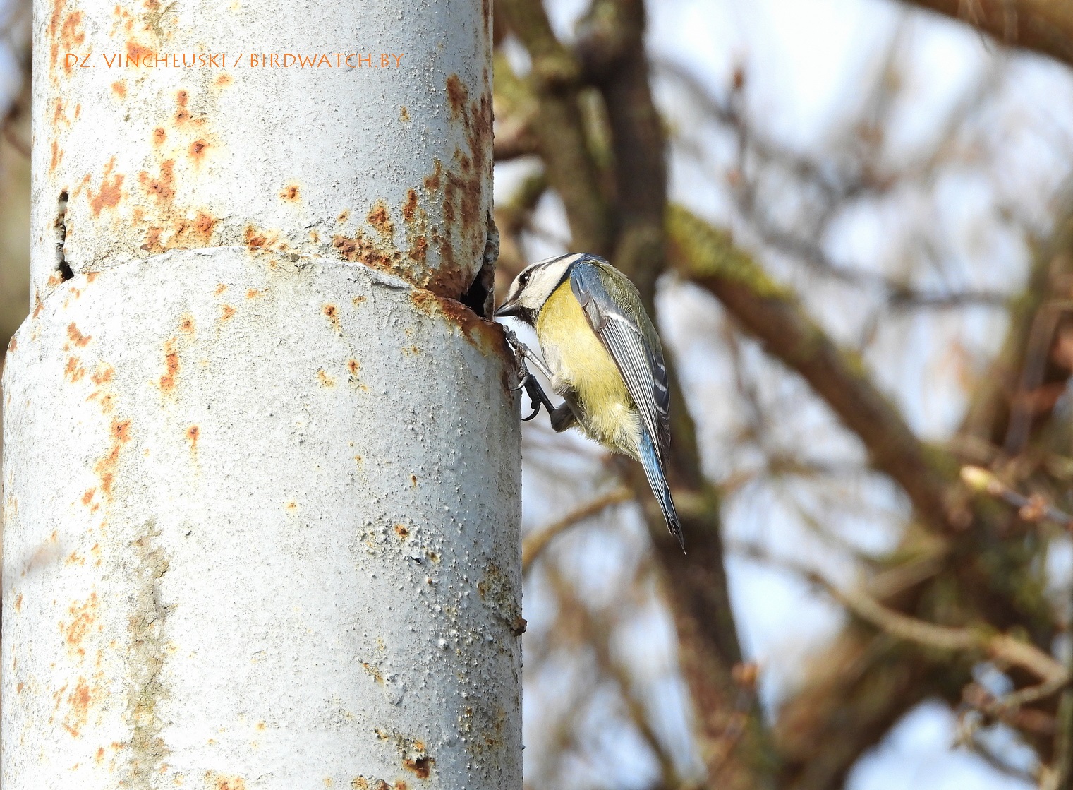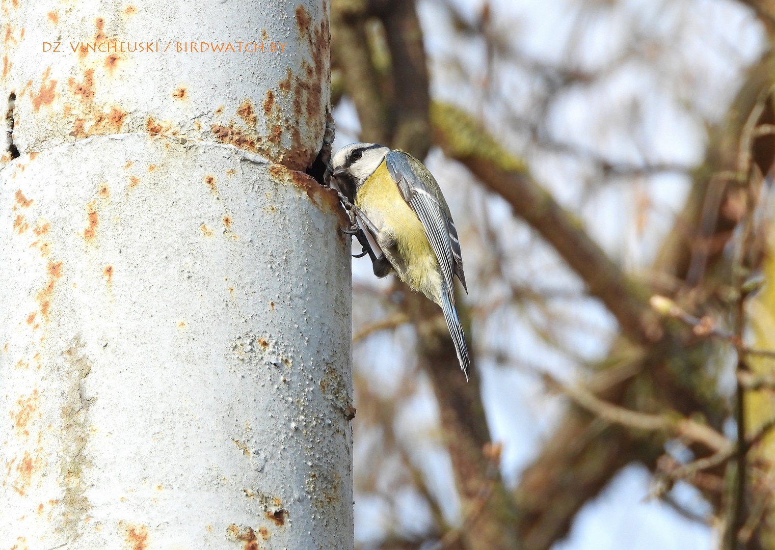 Другі тып магчымай трагедыі даволі падобны на першы, толькі што дапамагчы ў ім птушкам маларэальна. Гэтая пара сінічак (на здымках ніжэй трэцяга ці другога пасля тэксту) зусім нечакана для мяне пасля таго, як некалькі хвілін старанна харчавалася на коціках даволі высокай вярбы, потым паказала і выбранае месца для гнездавання - нішу ў металічнай частцы слупа, у якую яны забіраліся праз праржавелую дзірку. Нечым закрыць ці заткнуць яе на такой вышыні нерэальна, але можа птушаняты змогуць выбрацца праз яе і выляцець.