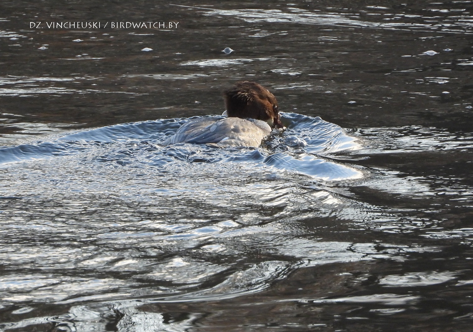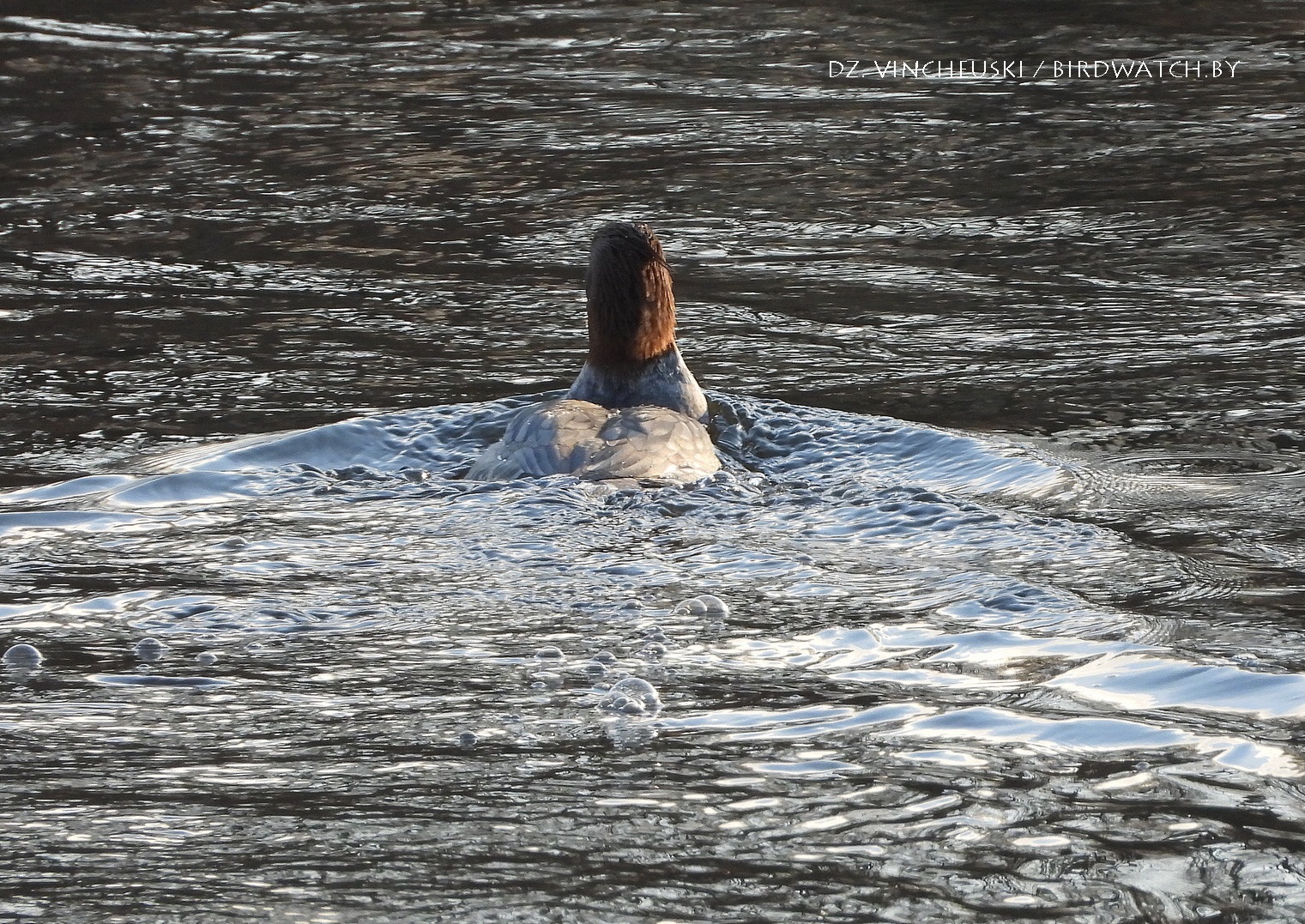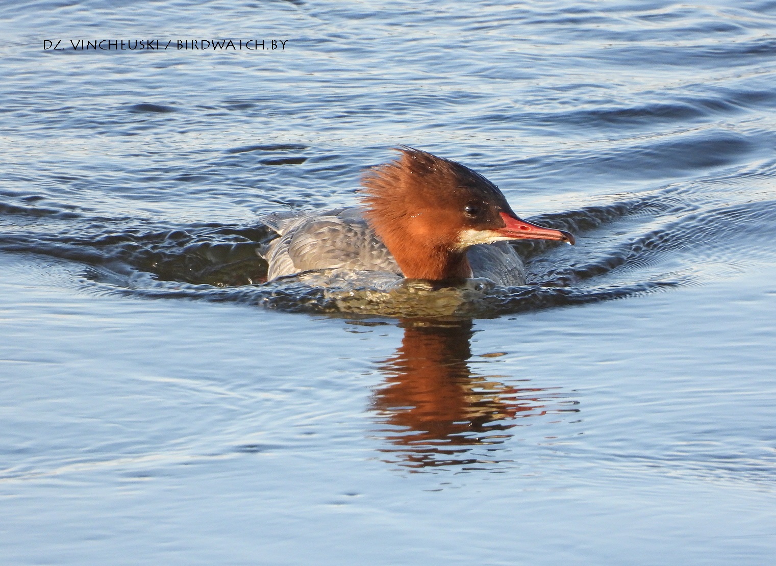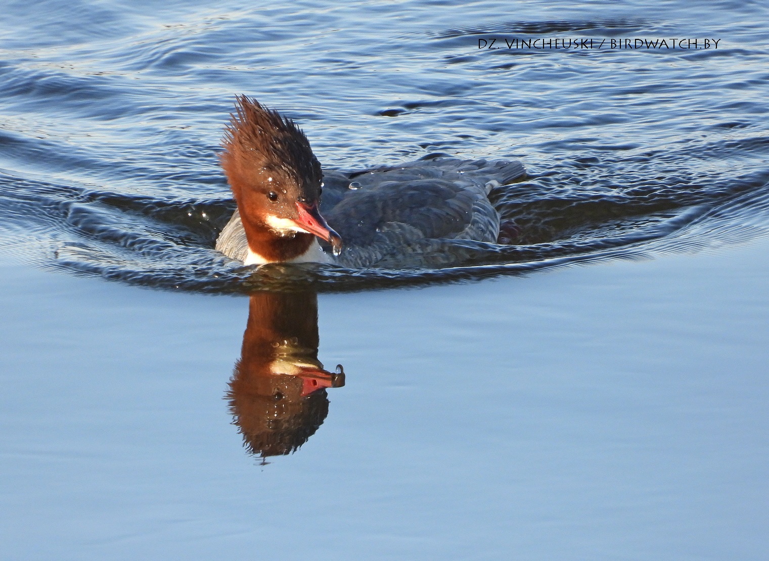 Пасля абеду і начнога марозу ўсё больш упэўнена пачало мінаць аблокі сонца і вада стала мякка-блакітнай, вельмі падобнай на неба над ёй. А вялікія савукі (Mergus merganser) пачалі ў рознай колькасці і з рознымі мэтамі заплываць у вусьце Гараднічанкі. І, значыць, апыналіся недалёка ад мяне.
