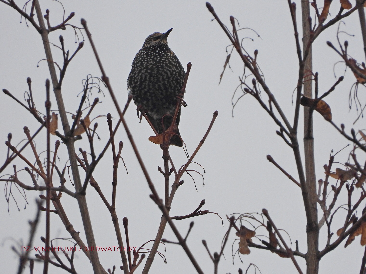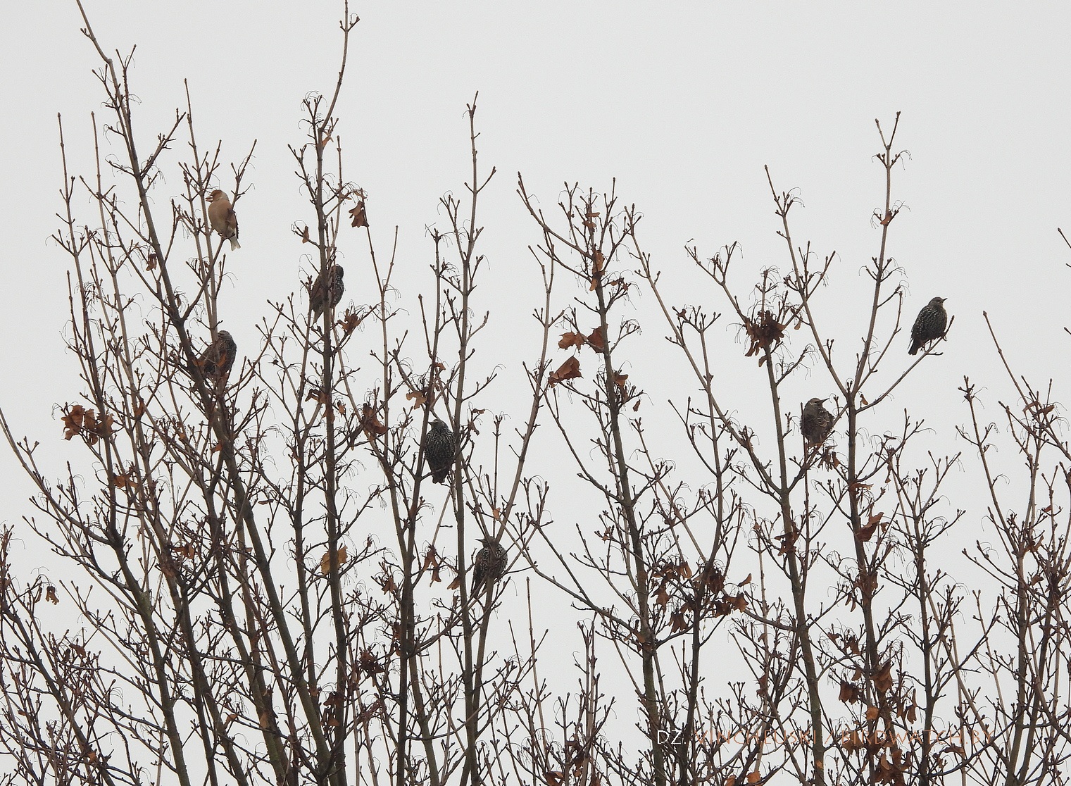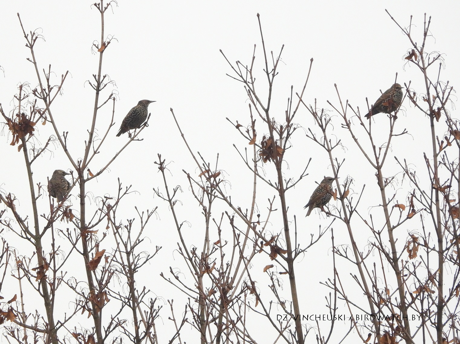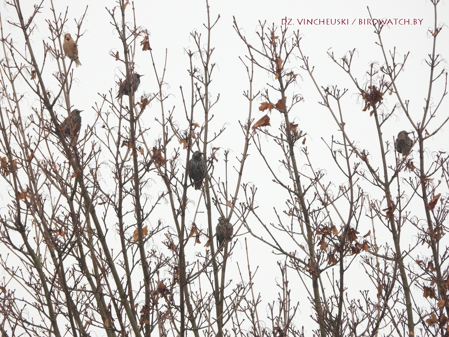 Не менш цікава, што гэты 'гарлапан' вывеў мяне на ... невялікую групку звычайных шпакоў (Sturnus vulgaris), якія сядзелі праз некалькі дрэваў збоку ад яго. Хаця спачатку мне здавалася, што іх больш, але насамрэч іх аказалася 8. Пакуль я назіраў за абаронай амялы, шпакі некуды адляцелі. І каб я не апынуўся ў адпаведны час у адпаведным месцы і адразу не паздымаў іх, то і не зрабіў бы сваю першую зімовую рэгістрацыю віда непасрэдна ў горадзе.