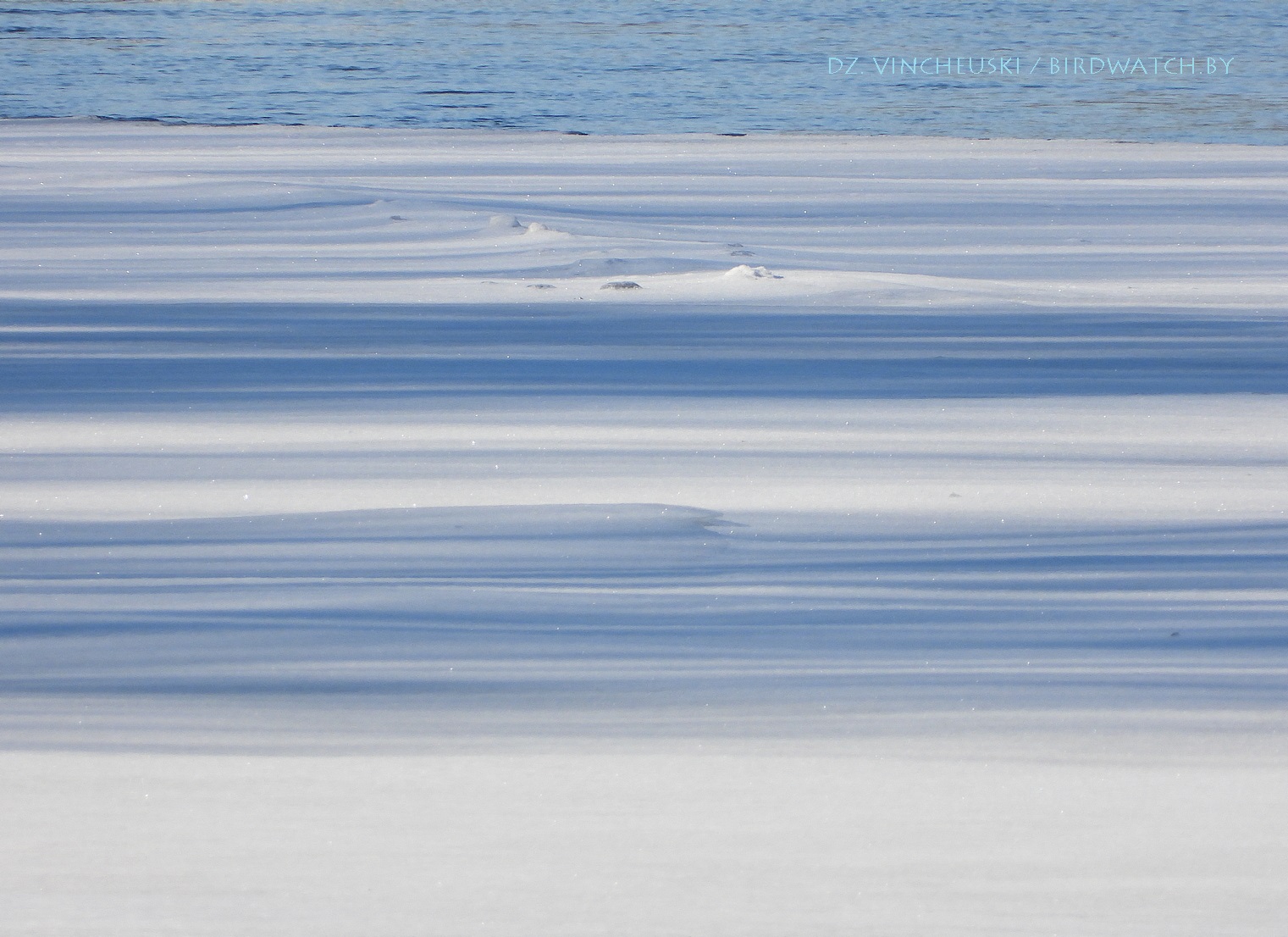 Хаця разгадка прыгажосці аказалася даволі простай: яркае, але нізкае - бо зімовае сонца, неймаверна выцягнула цені ад дрэваў на беразе далёка на лёд, прыпарошаны свежым белым снегам і ператварыла ў чароўныя сваімі адценнямі блакітнага, поласы-стужкі.