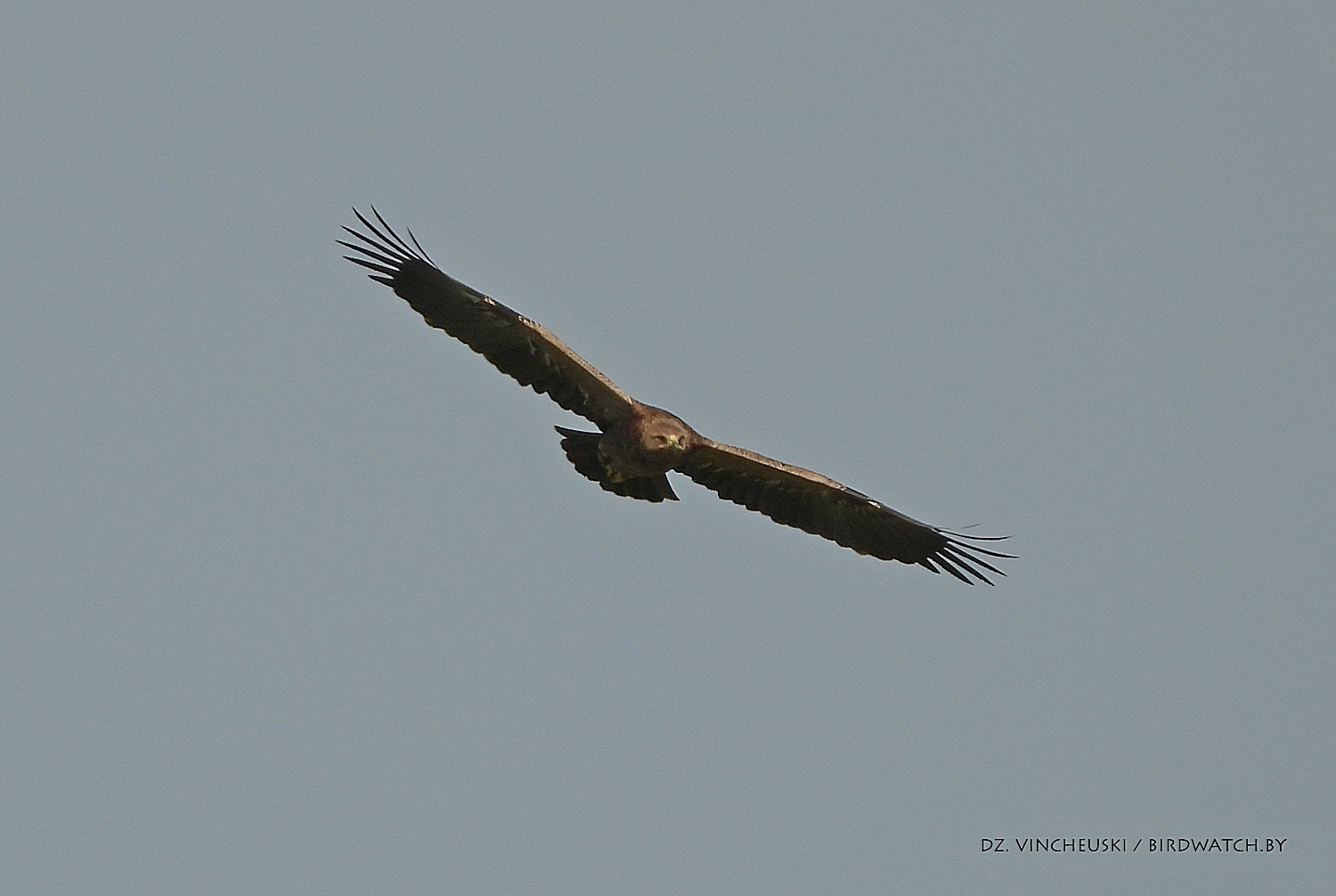 Звычайна яны не вельмі баяцца аўто і тады б можна было б засняць і працэс палявання, і саму птушку бліжэй, але пад'ехаць не атрымалася, а чалавека яны баяцца і адлятаюць здалёк, падымаючыся на знойдзеным тэрміку вышэй і вышэй.