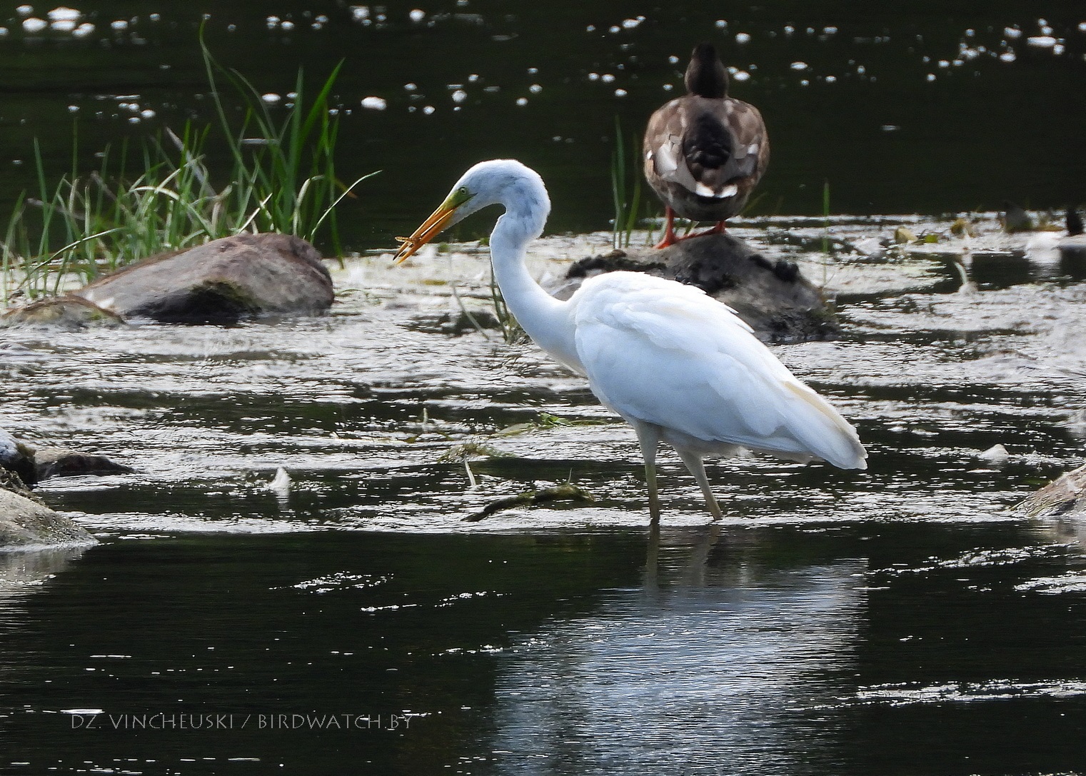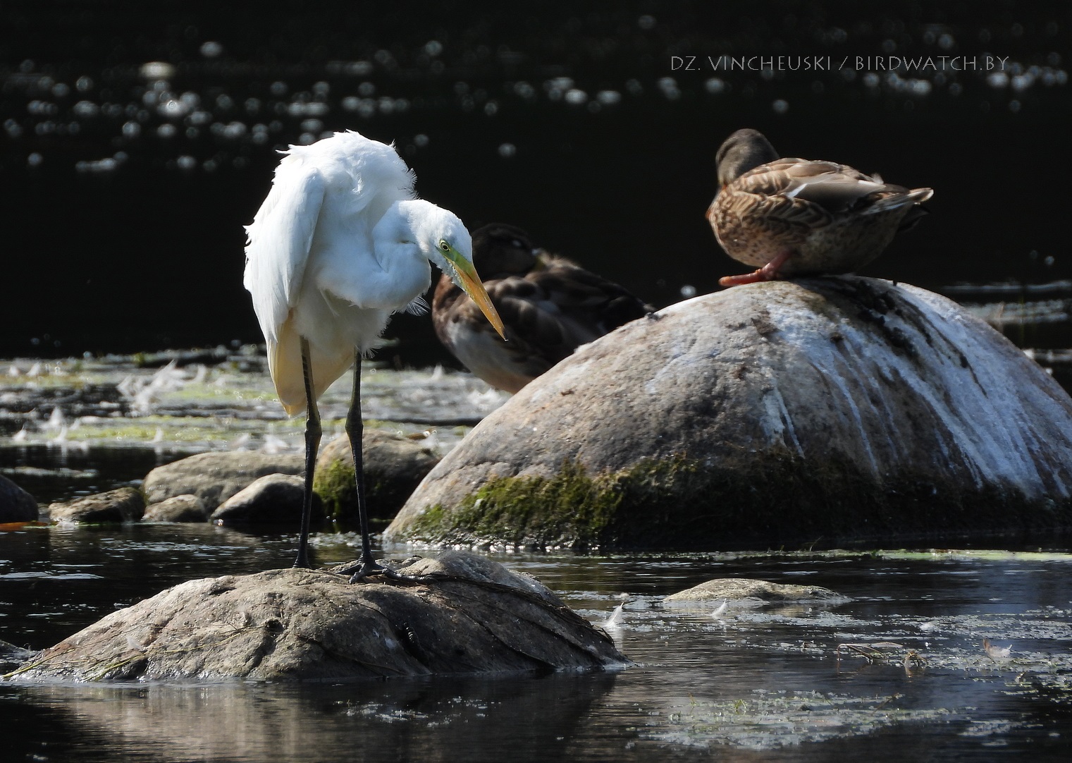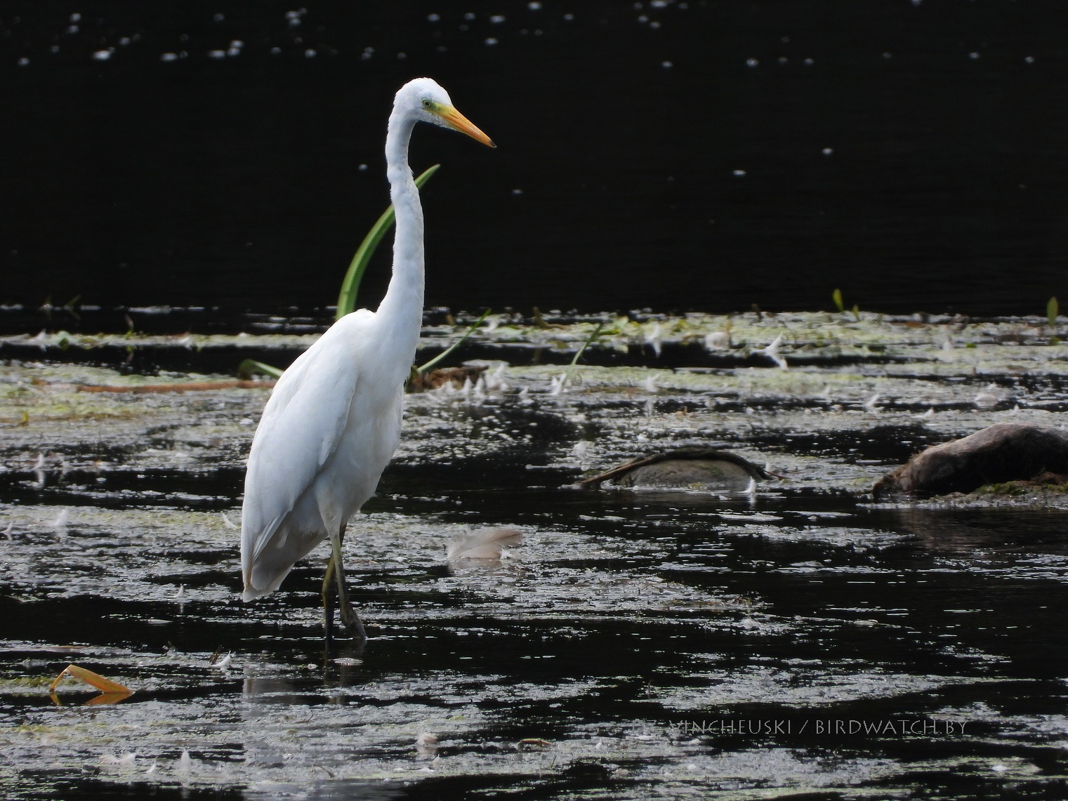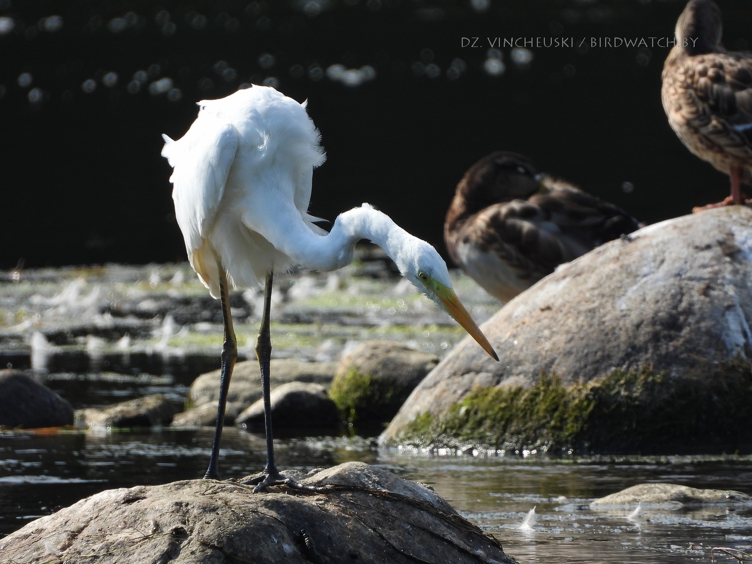 Так было і ў гэты раз ля вострава на Нёмане. Пасля таго, як вялікая белая чапля прагаладалася, яна ўжо з валуна, на якім адпачывала, пачала ўзірацца ў ваду перад сабой і хаця спачaтку нікога там злавіць не атрымалася, далей усё пайшло хутчэй. І першага злоўленага разам з пукам воднай расліннасці пячкура (Gobio gobio) не выратавала яго камуфляжная афарбоўка і невялікія памеры, як і наступнага за ім уюна (Misgurnus fossilis). На дзве паспяховыя атакі чаплі спатрэбіліся ўсяго 15 хвілін. А ўсё таму, што выдатны агляд зверху дазваляе ёй ўбачыць рухі і перамяшчэнні нават выдатна замаскаваных ахвяраў.