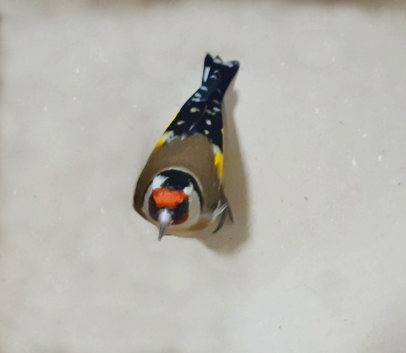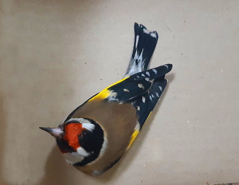 17.11.2025 г. Смиловичи, "Парк Смиловичи". Черноголовый щегол (Carduelis carduelis) ударился в стекло окна. Подобрали, обогрели и выпустили. Улетел в глубину парка. Автор - Владимир Пенькевич.
