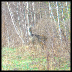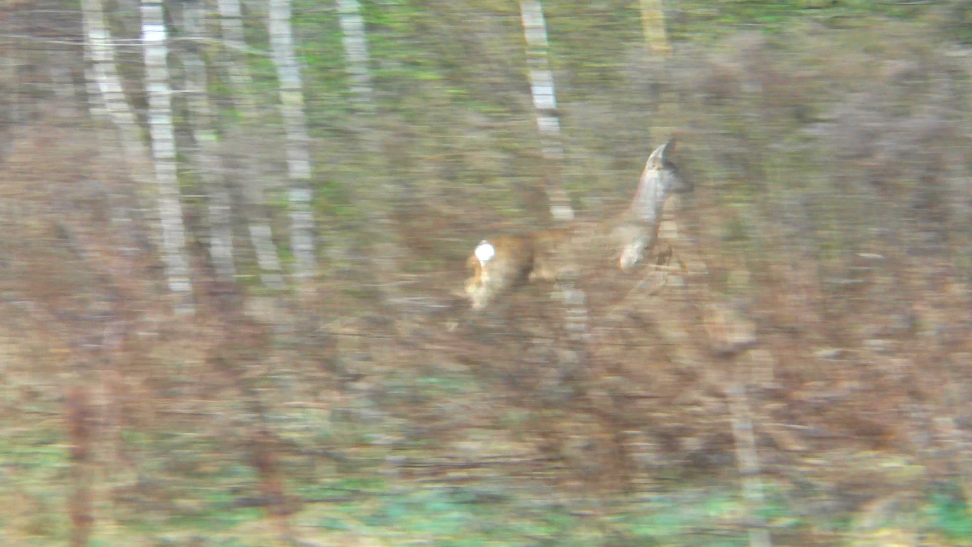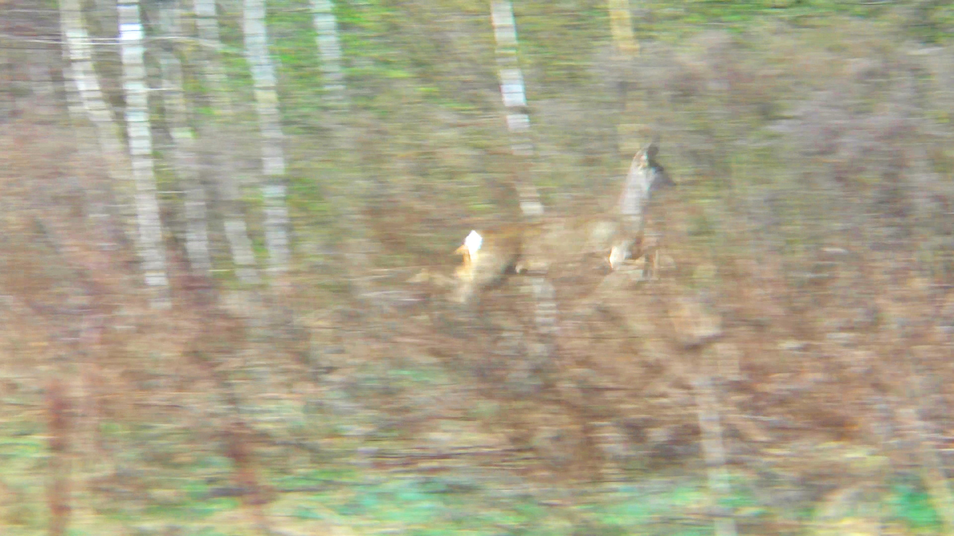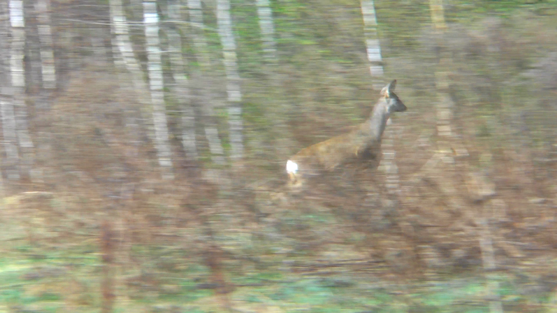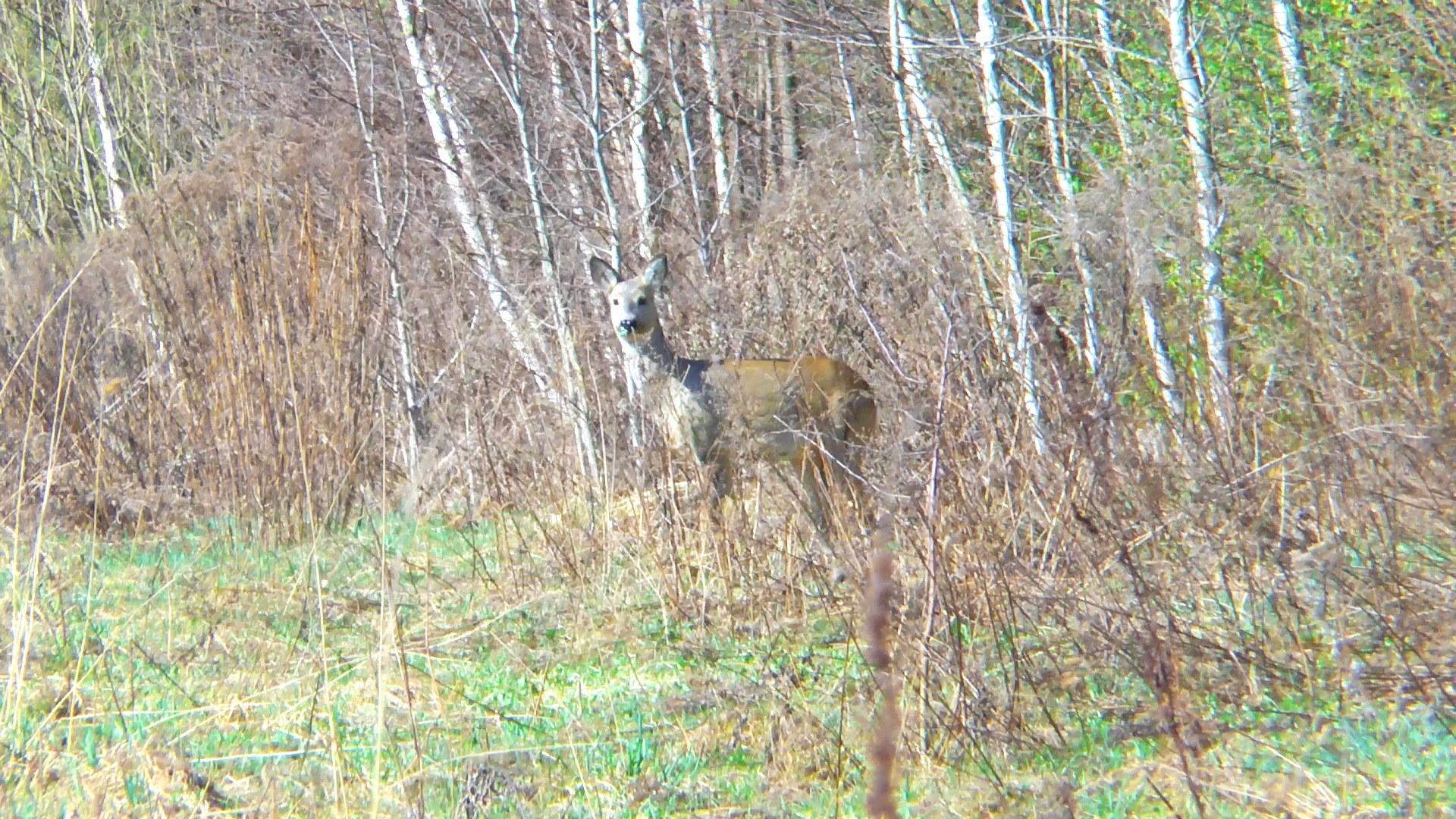 02.04.2026 г. Лес около д. Подгорье. Шел вдоль леса. Увидел косулю, которая щипала молодую травку, медленно продвигаясь к лугу. Была далековато. Начал снимать на видео. Заметила, и бросилась назад в лес... Автор - Владимир Пенькевич.