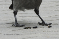 Сініцы мірна частуюцца зусім побач з дзятлам. А вось папаўзьняў яны староняцца, не кажучы ўжо пра соек. Сёньня з раніцы ў сталоўцы амаль адны Parus major, сініх бачыў усяго парачку